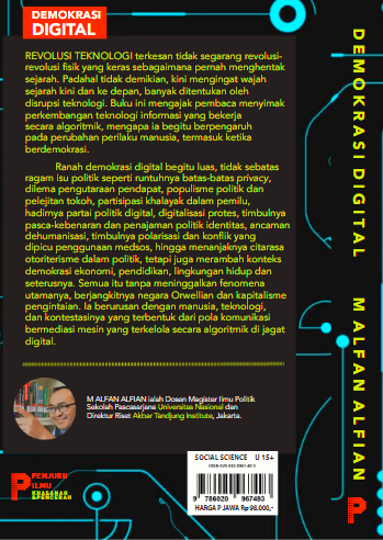 Revolusi teknologi terkesan tidak segarang revolusirevolusi fisik yang keras sebagaimana pernah menghentak sejarah. Padahal tidak demikian, kini mengingat wajah sejarah kini dan ke depan, banyak ditentukan oleh disrupsi teknologi. Buku ini mengajak pembaca menyimak perkembangan teknologi informasi yang bekerja secara algoritmik, mengapa ia begitu berpengaruh pada perubahan perilaku manusia, termasuk ketika berdemokrasi.